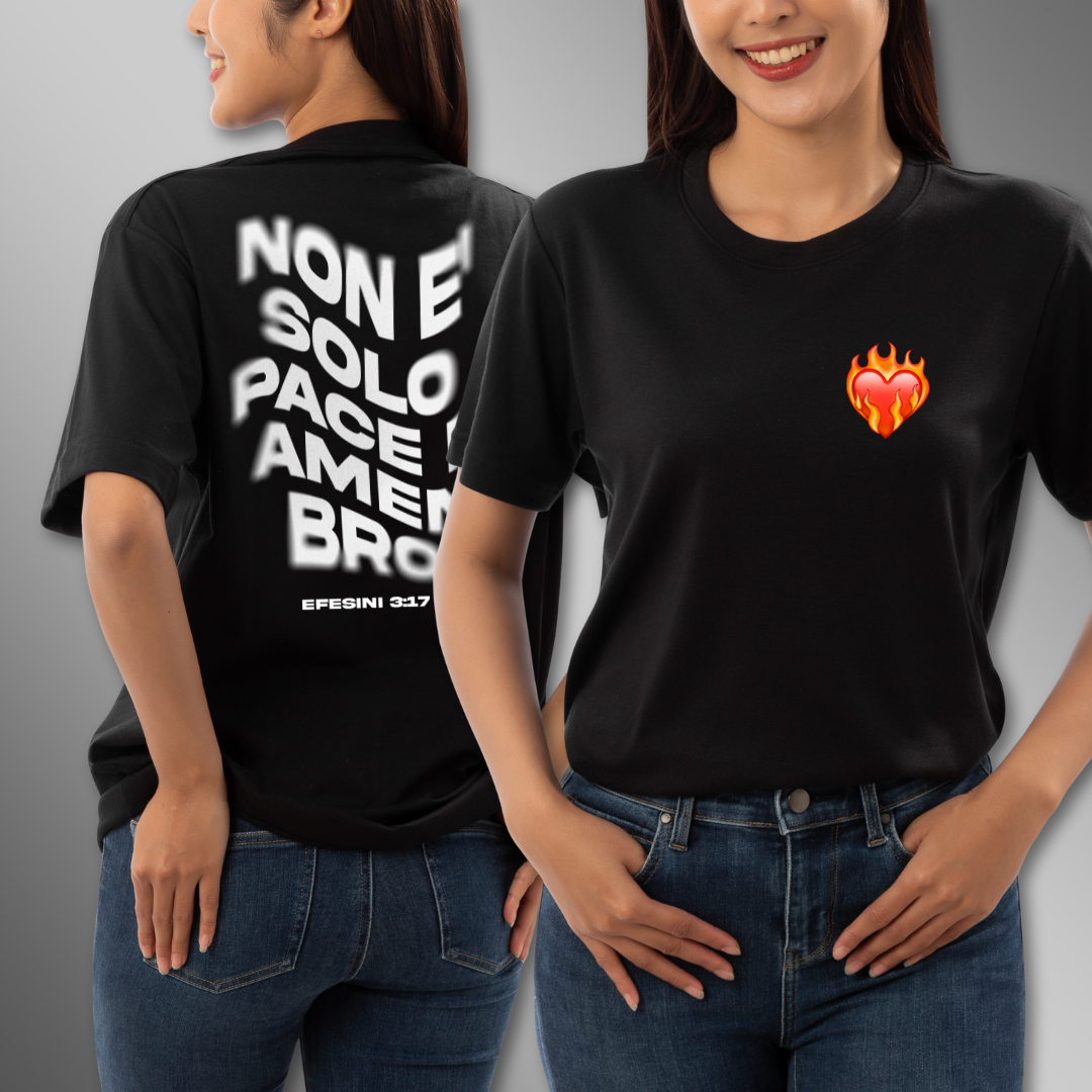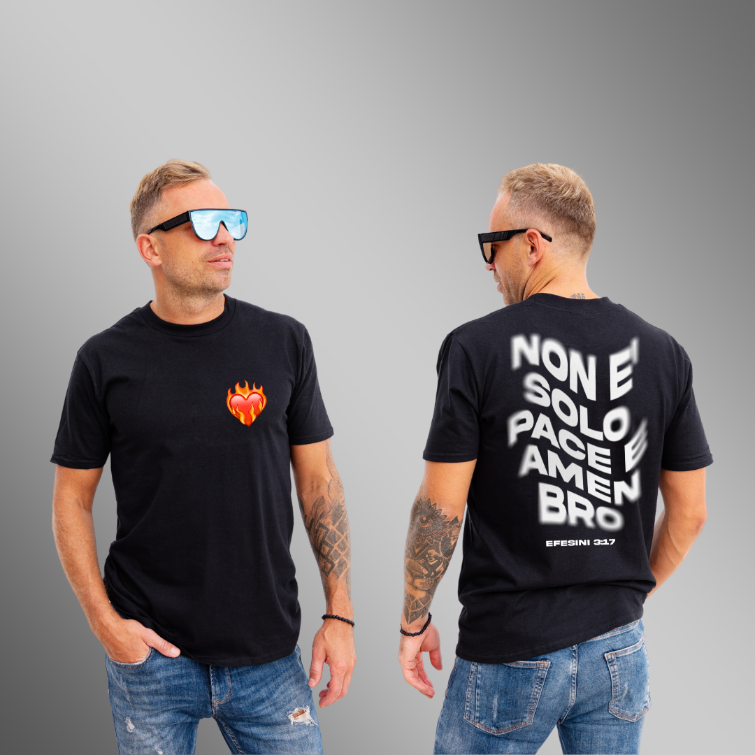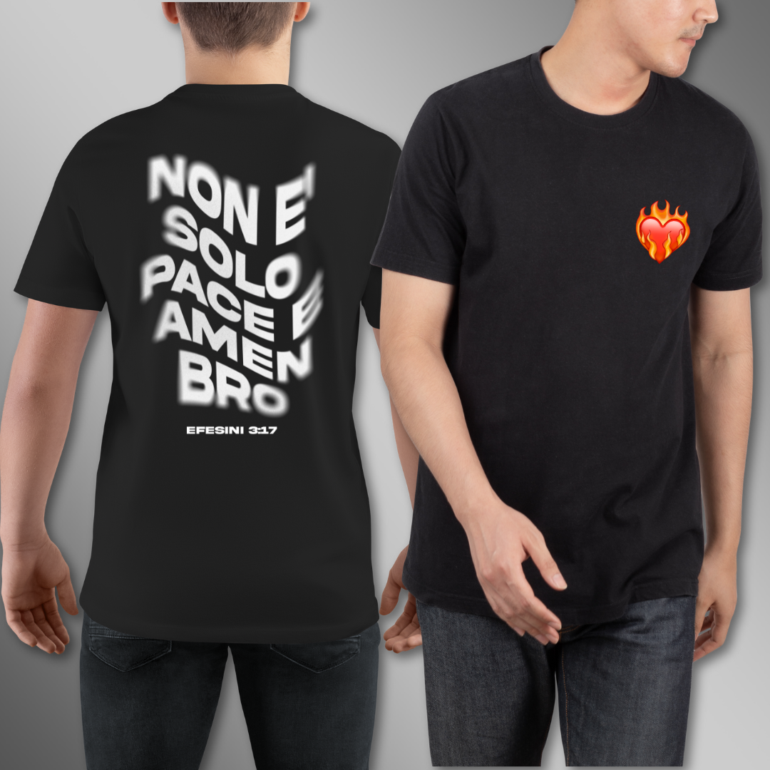Scopri il piacere di combinare comfort, stile e individualità con la t-shirt Non Solo Pace e Amen Bro. Rendila tua oggi stesso e ridefinisci lo stile casual con un tocco personale!